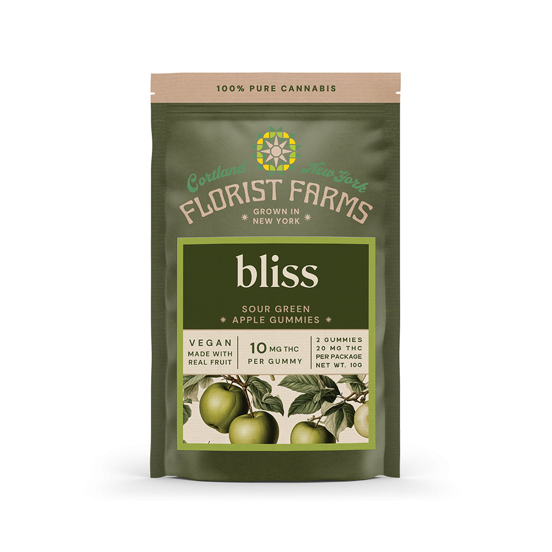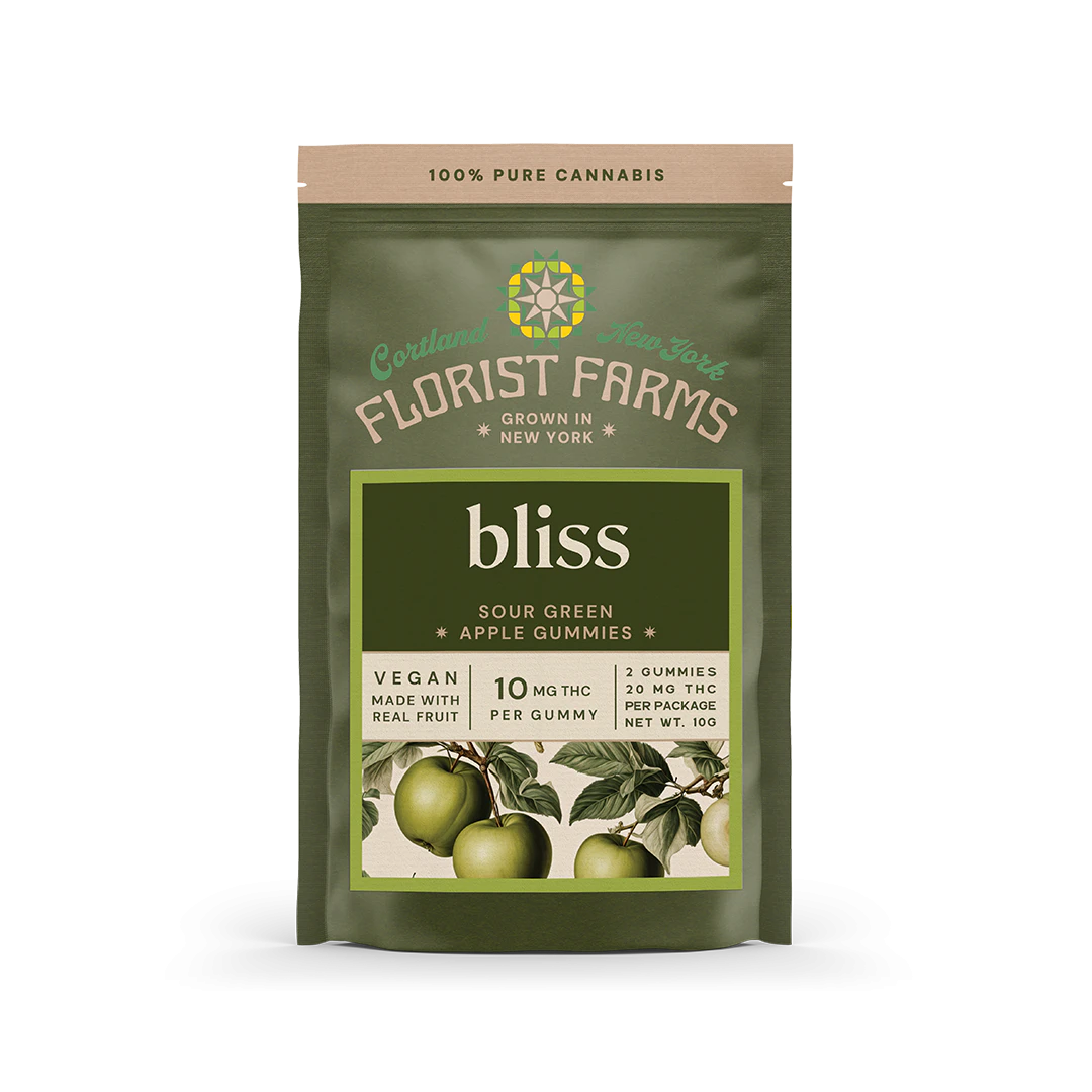 Experience the perfect high with Florist Farms' Sour Green Apple gummy. Blending tangy flavor with 10mg of THC, it delivers a euphoric experience.
