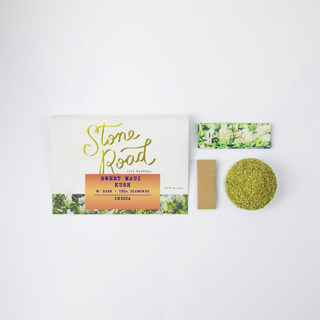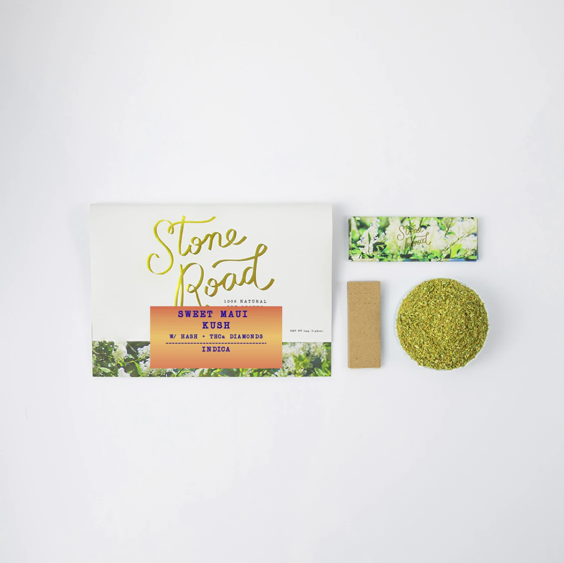 Sweet Maui Kush has a rich and creamy taste accented by hints of vanilla and a touch of sweetness. This varietal is known for it's earthy and floral notes. This relaxing and calming indica pre-ground pouch is made from 100% premium flower — never shake or trim. Infused with both bubble hash and diamonds, each ultra-convenient pack includes papers and filters for a delicious, ready-to-roll experience.